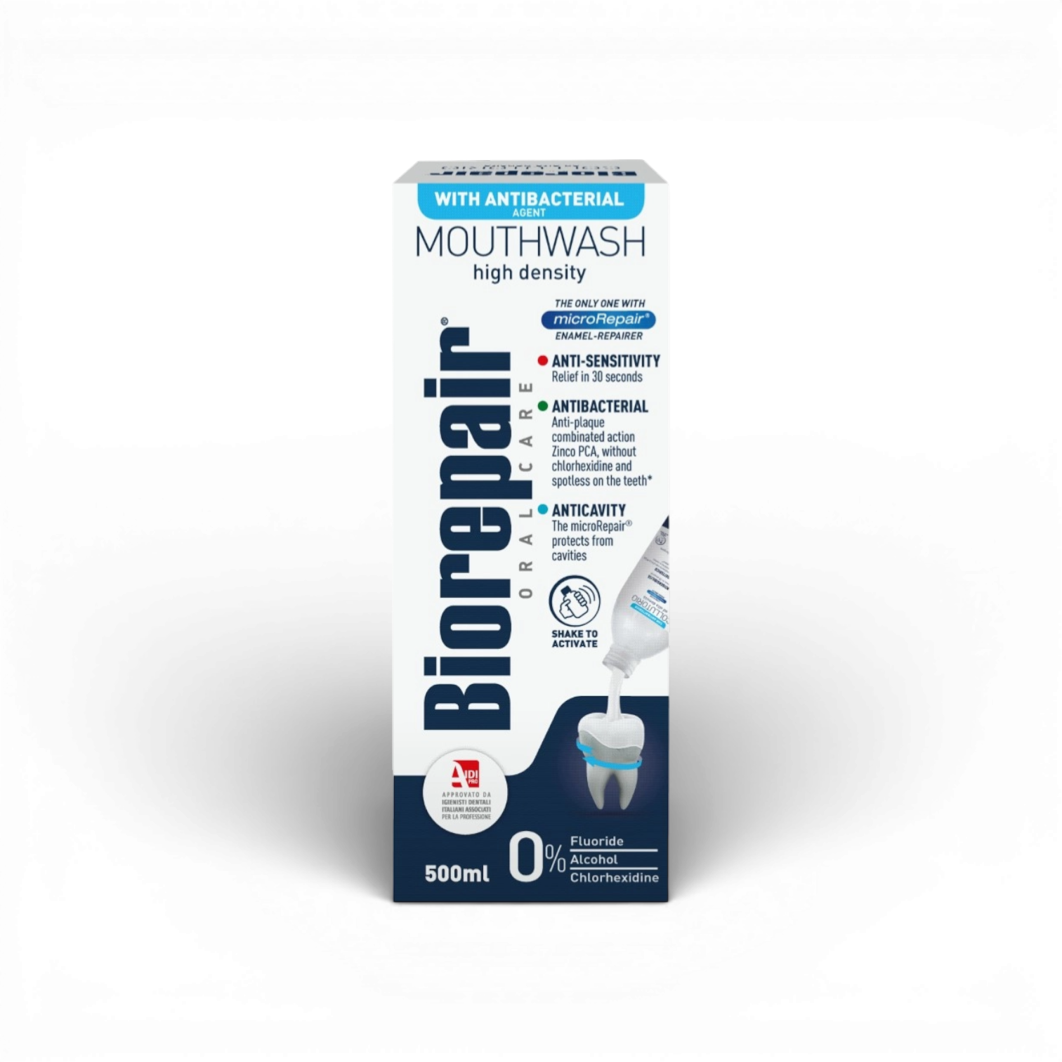 Biorepair Oral Care Mouthwash is a high-density formula specially designed to help repair and protect tooth enamel while providing complete oral care. Powered by microRepair® technology, it helps rebuild enamel, protect against cavities, and relieve tooth sensitivity by acting directly on exposed dentin.