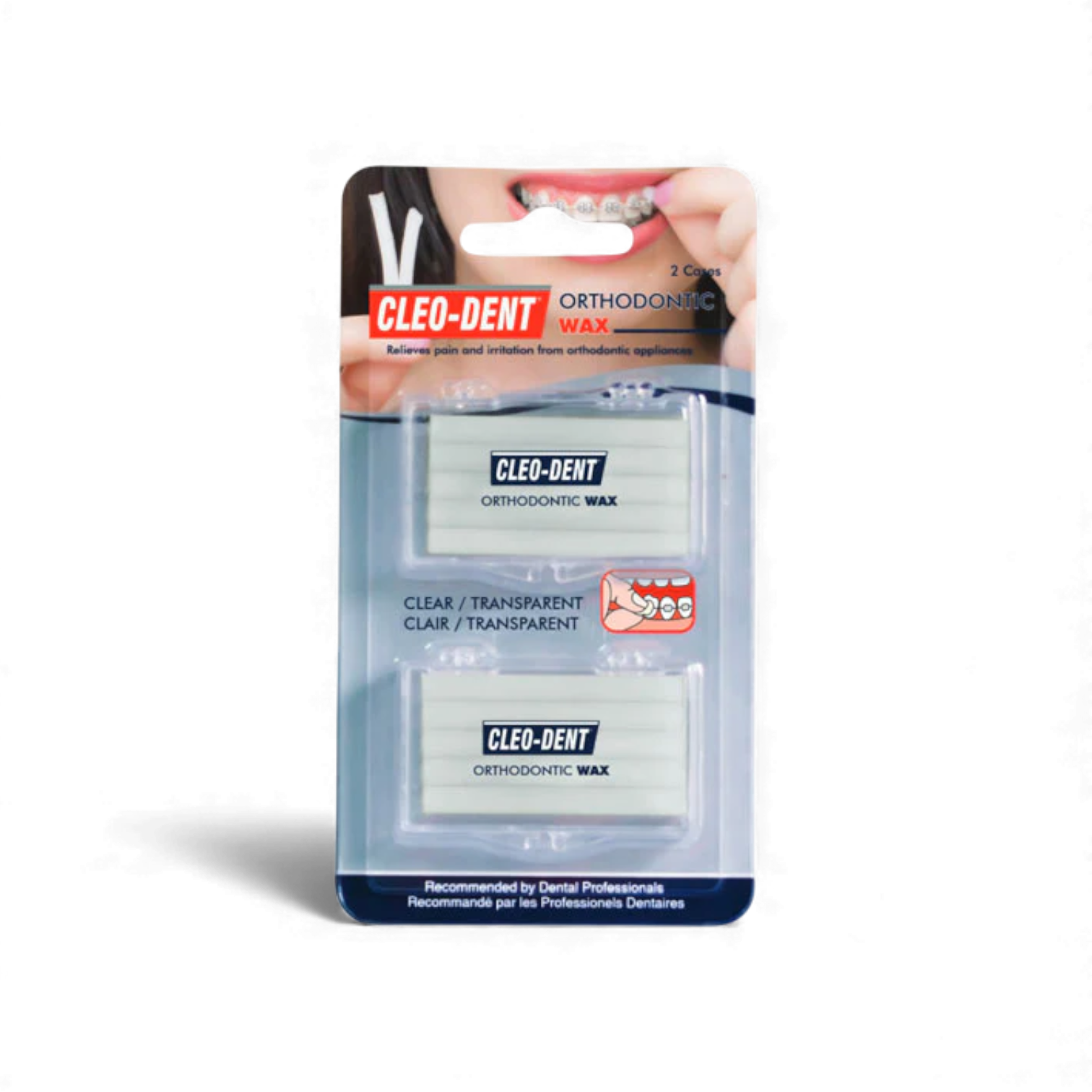 Cleo-Dent Orthodontic Wax is designed to provide comfort and protection for people wearing braces or orthodontic appliances. It helps prevent irritation and sores caused by brackets, wires, and other orthodontic components by creating a smooth protective barrier between the appliance and the inside of the mouth. The wax is easy to apply, safe for daily use, and helps improve comfort during orthodontic treatment, especially in the early stages or after adjustments.