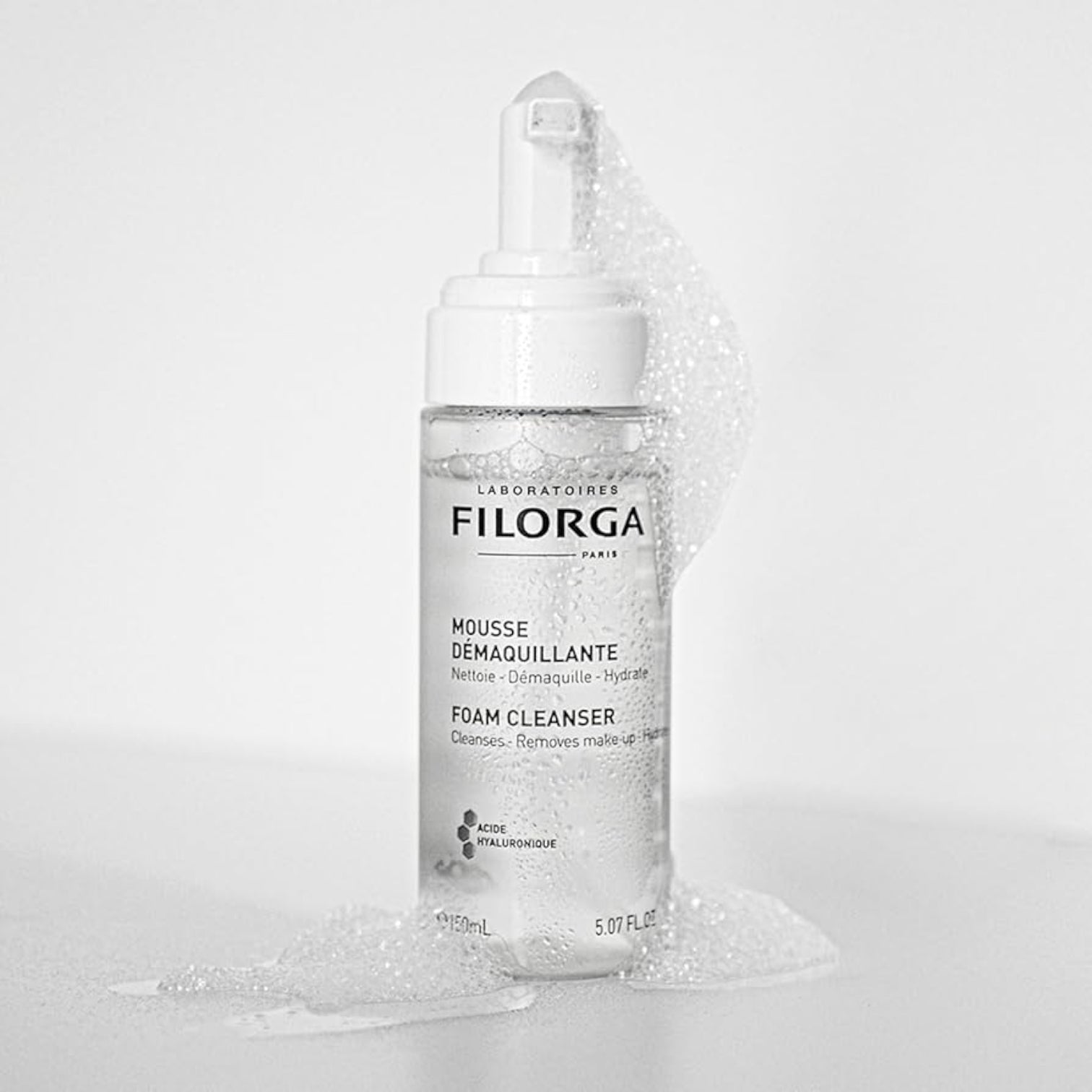 Filorga Foam Cleanser is a luxurious cleansing mousse that gently removes makeup and impurities while hydrating and soothing the skin. Enriched with hyaluronic acid, it helps maintain optimal moisture levels, leaving the skin feeling soft, smooth, and refreshed after each use. The airy foam texture glides effortlessly over the face and rinses off easily without residue. Packaged in a convenient pump bottle, it ensures precise and hygienic application. Suitable for all skin types, including sensitive skin. Made in France.