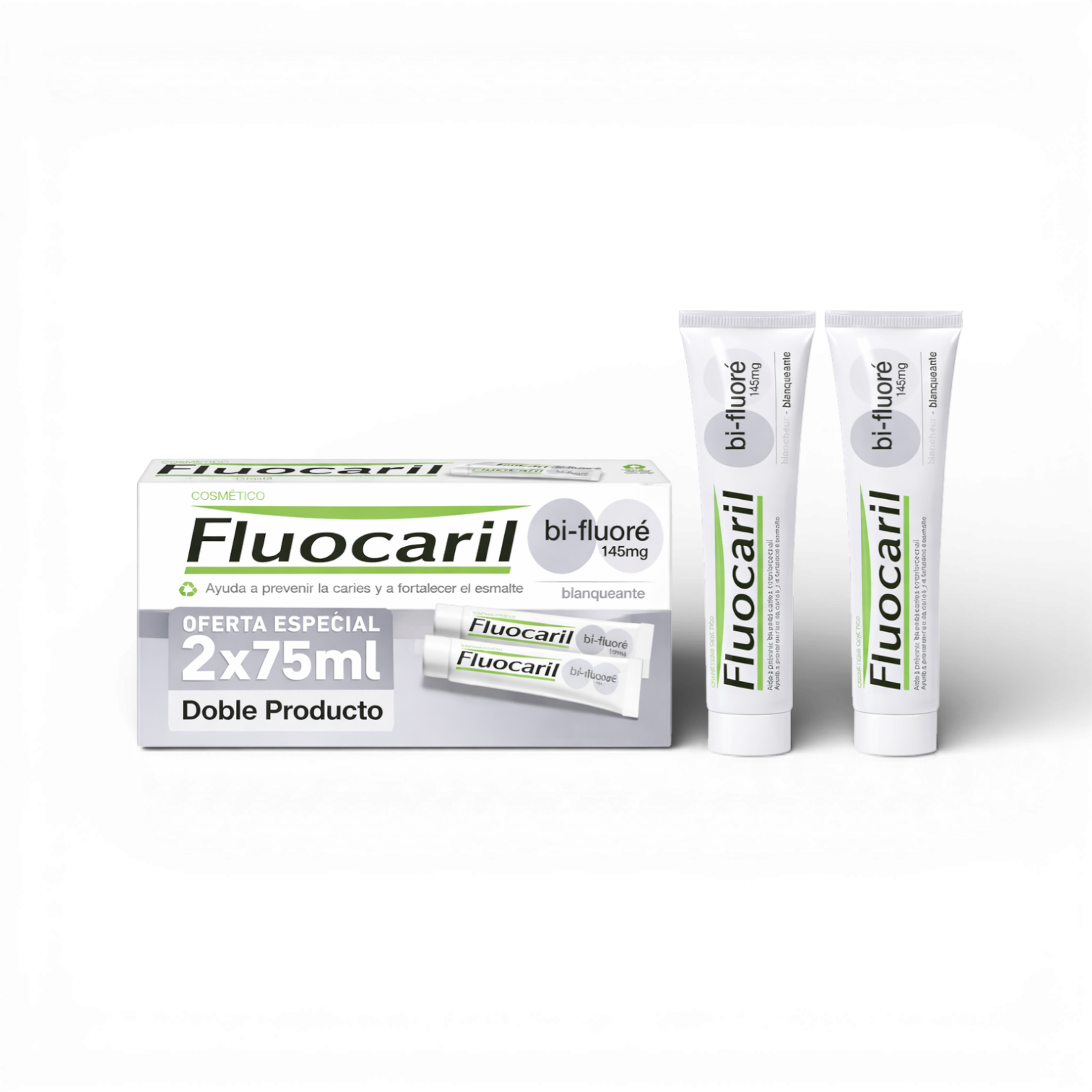 Fluocaril Whitening Toothpaste Value Pack contains two tubes designed to help restore the natural whiteness of teeth while providing effective daily oral protection. Its advanced formula helps remove surface stains caused by food and drinks, supports enamel strength, and promotes a cleaner, brighter smile with regular use.