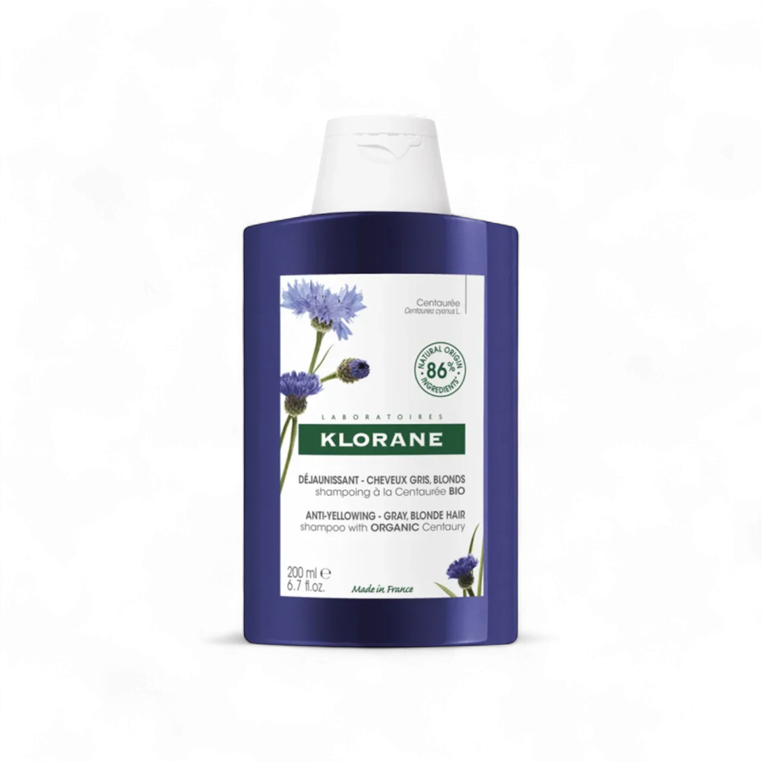 Klorane Anti-Yellowing Shampoo with Organic Centaury is specially formulated for natural, colored, or bleached gray and blonde hair. Enriched with 86% natural-origin ingredients and organic centaury extract, it neutralizes yellow and brassy tones without staining the scalp. The gentle, biodegradable formula enhances shine, revives cool tones, and leaves hair soft, radiant, and easy to manage. Made in France. Silicone-free and vegan.