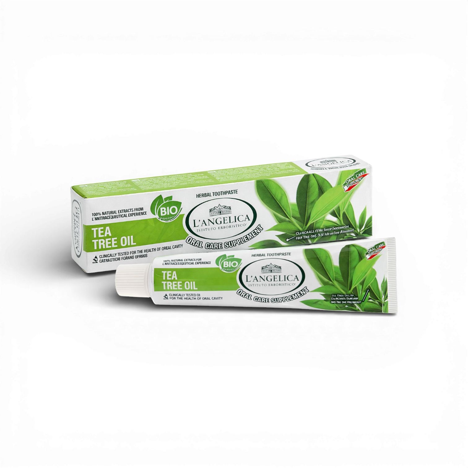 L’Angelica Herbal Toothpaste Tea Tree Oil is a bio-based formula made with 100% natural extracts inspired by Italian herbal expertise.