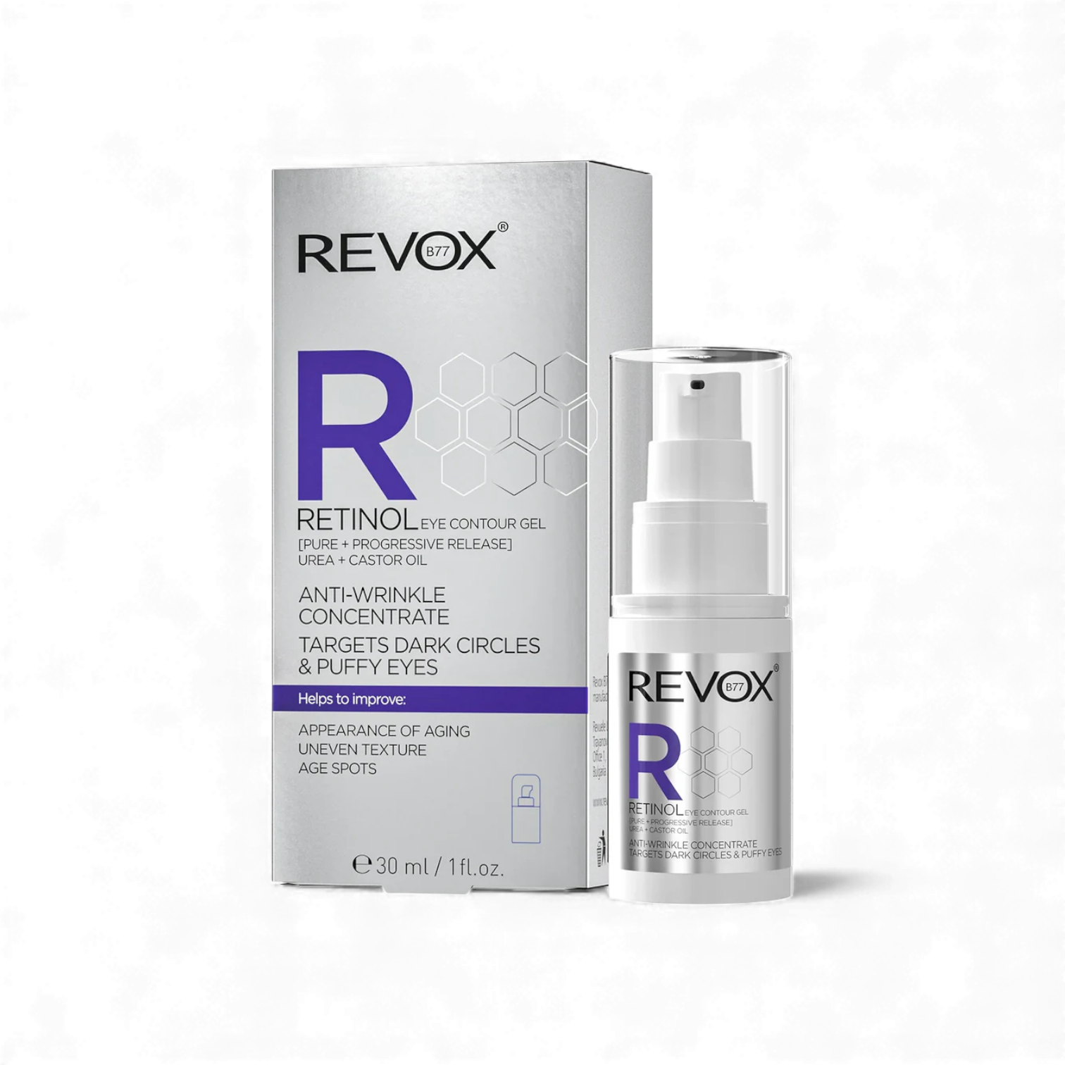 Revitalize your eye area with Revox Retinol Eye Gel Anti-Wrinkle, a powerful formula that targets visible signs of aging for a smoother, more youthful look. Enriched with retinol, aloe vera, and antioxidants, this lightweight gel helps reduce the appearance of wrinkles, fine lines, and dark circles while hydrating and firming the delicate skin around the eyes. Its refreshing texture absorbs quickly, leaving your eyes looking rested, radiant, and rejuvenated with every use.