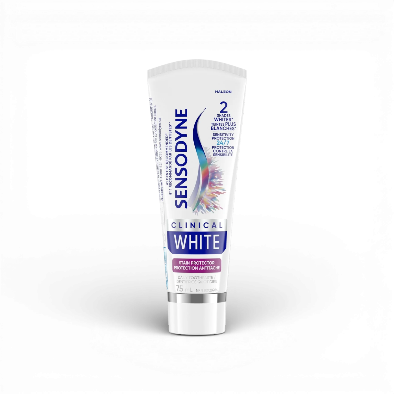 Sensodyne Clinical White Stain Protector Toothpaste is specially formulated to help whiten teeth while providing continuous care for sensitive teeth. Its advanced whitening formula helps visibly whiten teeth by up to two shades and forms a protective layer that helps prevent new stains from forming.