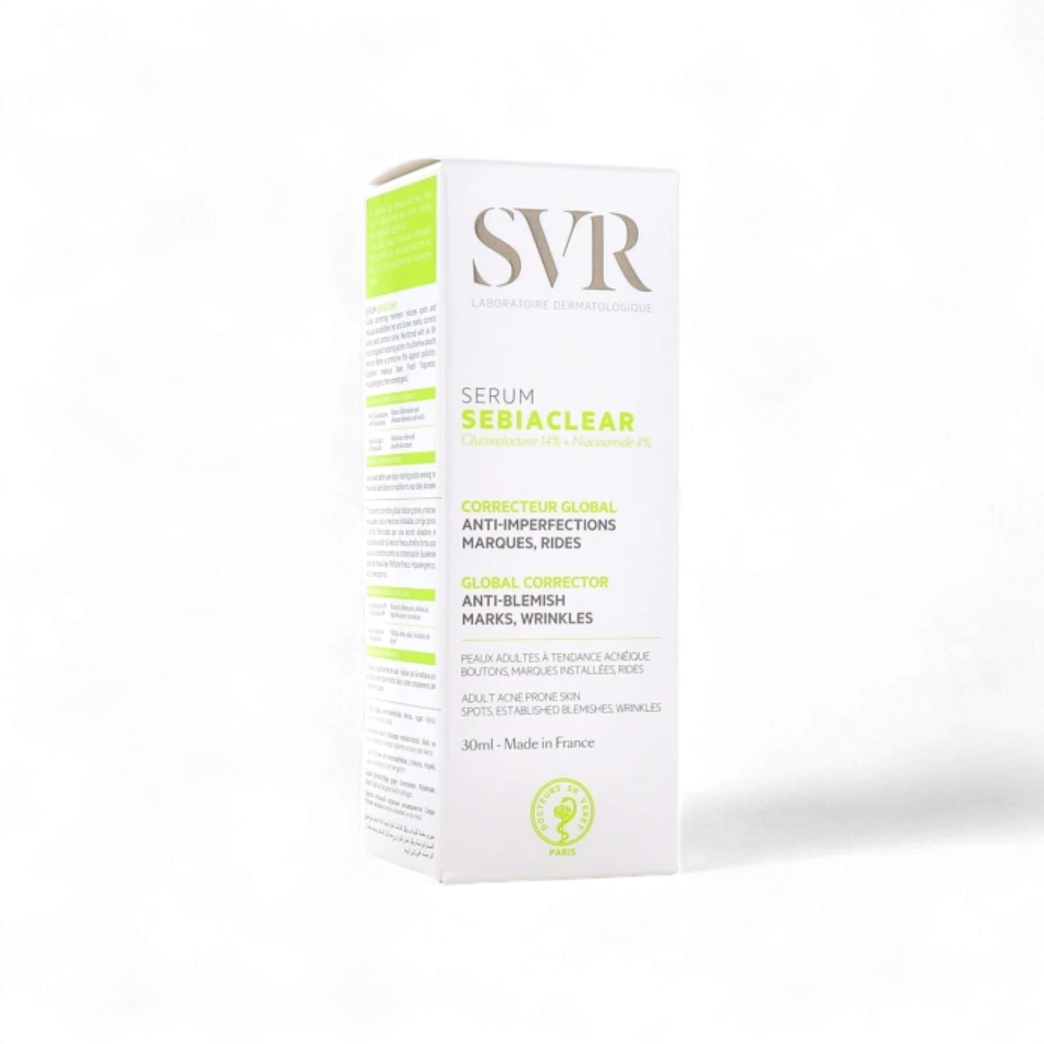 SVR Sebiaclear Serum is a powerful global corrector designed for adult acne-prone skin. Formulated with gluconolactone and niacinamide, it targets imperfections, marks, and fine lines simultaneously. The serum refines skin texture, unclogs pores, and reduces excess sebum while providing anti-aging benefits. Its lightweight, non-greasy texture absorbs quickly, leaving skin smoother, clearer, and more radiant. Ideal for daily use under makeup. Dermatologically tested and made in France.